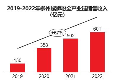 以螺蛳粉为例,2012年,广西柳州特色小吃螺蛳粉登上纪录片《舌尖上的中国》,初次进入大众视野,并出现了短暂火爆;2019年李子柒螺蛳粉视频走红网络,拉动海内外市场双双增长。以供应链上游为例,柳州市养殖螺蛳面积由2019年的1.15万亩扩大至到2022年的6.5万亩。螺蛳粉全产业链销售收入从2019年的130亿元,增长至2022年的600亿元,产业经济持续高歌猛进,每年再创新高。